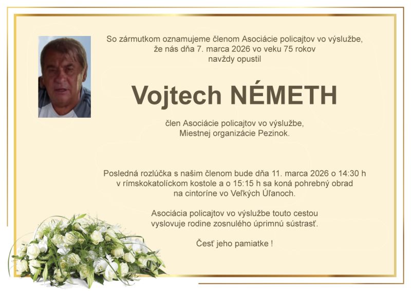 | Vojtech Németh | zomrel 7. marca 2026 | 75 | parte |