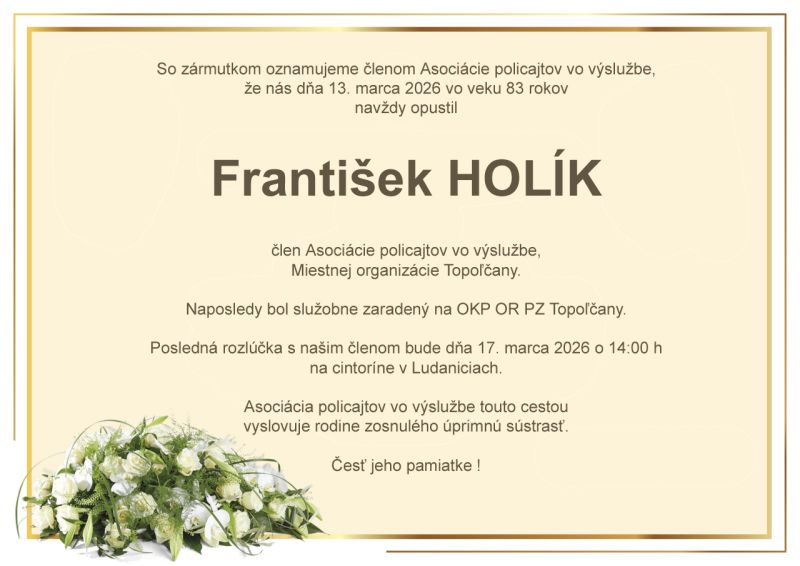 | František Holík | zomrel 13. marca 2026 | 83 | parte |