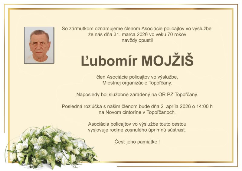 | Ľubomír Mojžiš | zomrel 31. marca 2026 | 70 | parte |