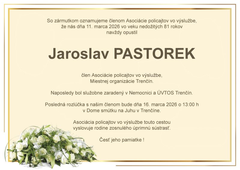 | Jaroslav Pastorek | zomrel 11. marca 2026 | 80 | parte |